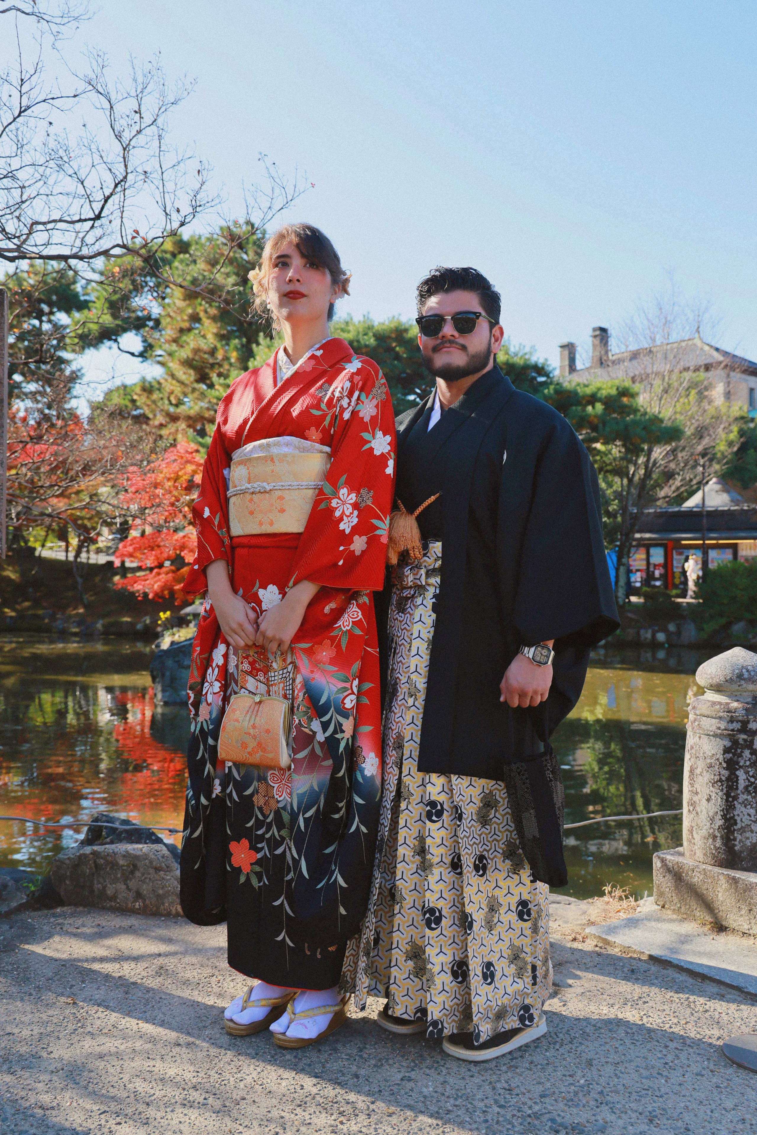 着物を着て京都の街を歩くと、まるで古代日本にタイムスリップしたような気分になります。着物の色や柄は精巧にデザインされ、一着ごとに独自のアート作品です。着物の着方や細部にもこだわりがあり、髪型から履き物まで、細かな点を注意しなければ、完璧な美しいさを引き出すことができません。